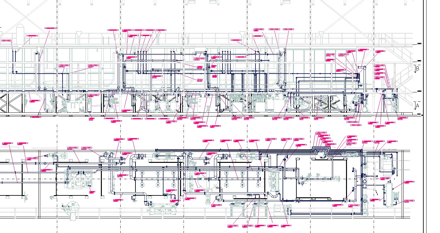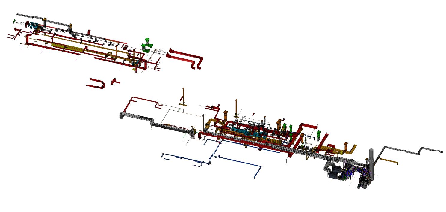 3D CAD Digitale Fabrik und LayouterstellungWir nehmen Ihren Bestand incl. des Gebäude vor Ort auf. Die Modellierung der Anlagentechnik erfolgt in der Regel mit Microstation und den TRICAD MS Modulen Fördertechnik, Stahlbau, Heizung, Sanitär, Lüftung, Elektro.Neuanlagen planen und konstruieren wir lagegerecht und entsprechend Ihrer CAD Richtlinien. Die Detailtiefe geben Sie vor. Wir überprüfen unsere Planung mit NavisWorks auf Kollisionen. Sie erhalten von uns Layouts, Verfahrensschemata, Aggregateaufstellpläne, Verrohrungspläne, Belastungspläne, Anschlußpläne Elektrik, Fundamentpläne, Sicherheitslayouts etc. Beispiel TGA (3D Detailplanung der Verrohrung, Erstellung von Stücklisten, Montageplänen etc.)